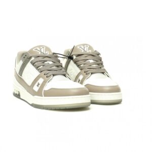 このLV Trainerスニーカーは、1854年以来のLouis Vuittonの卓越した職人技と、贅沢とストリートファッションを完璧に融合しています。ダークグレーとホワイトの配色に古典的なLVモノグラムエンボスデザインを施し、控えめな贅沢さを表現しています。ルイ・ヴィトンの筆記体ロゴと特有の54の装飾が施され、ブランドの設立年を讃え、豊かな歴史を示しています。