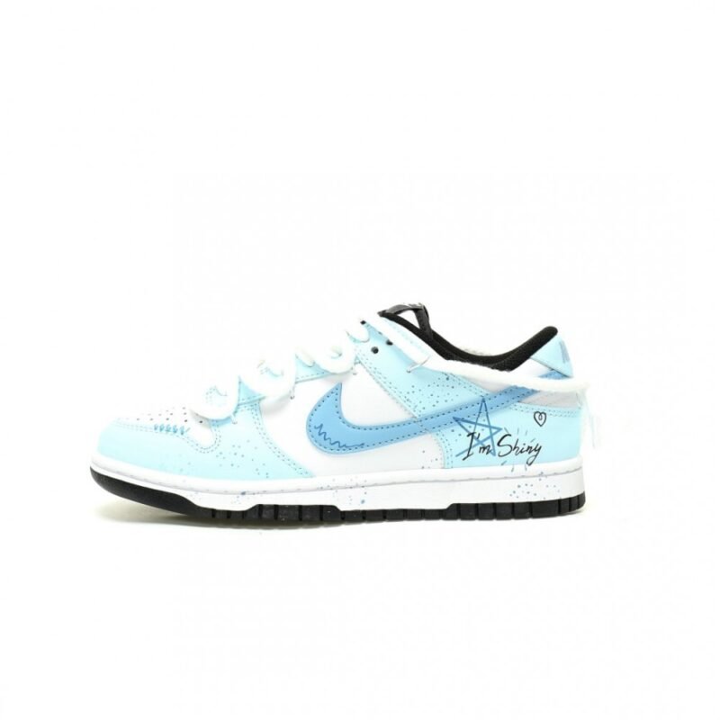 Nike SB Dunkシリーズは、スケートボードカルチャーのクラシックな代表として、ブランドの革新精神とストリートアティチュードを継承しています。清新な白と青のカラーリングにグラフィティ要素を取り入れ、独特なデコンストラクション美学を表現し、若い世代の個性と活力を引き立てます。