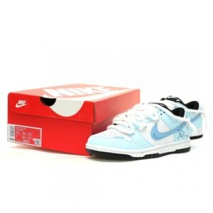 🔥✨👟 Nike SB Dunk Lowシリーズが素晴らしく登場しました。この白と青のカラーリングのローカットスケートボードシューズは、ストリートファッションとスポーツ美学を完璧に融合しています。